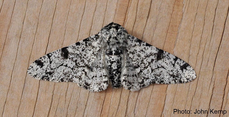 Though widespread on the mainland only two records from the Outer Hebrides. A rather striking, large moth that has a blackish coloured form in industrial areas, though this type is now declining as atmospheric pollution decreases. On the wing from May to August in wooded areas. Larvae feed on a very wide range of trees and shrubs including birches (Betula spp.), oaks (Quercus spp.), poplars (Populus spp.), brambles (Rubus spp.) and broom (Cytisus scoparius).