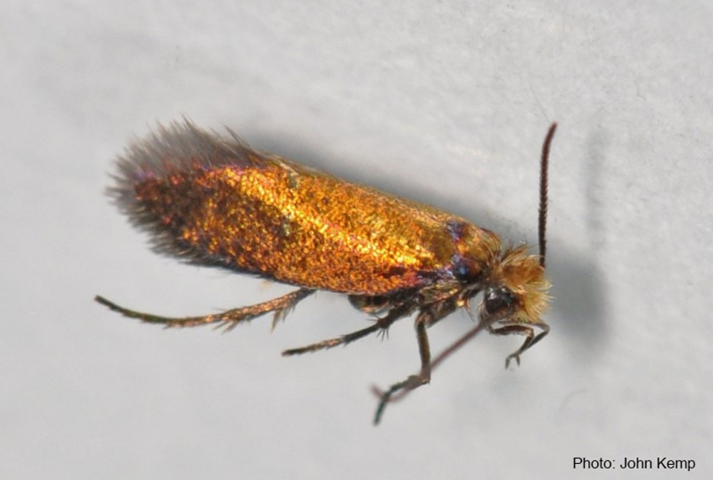 The pollen-moths depicted on our website are ubiquitous in Britain but rarely recorded on the Outer Hebrides. This species was first netted on South Uist in June 2013 with a subsequent record from Lewis in June 2017. They are on the wing in mid-summer and frequent herbaceous plants such as buttercups (Ranunculus spp.) and marsh marigold (Caltha palustris).