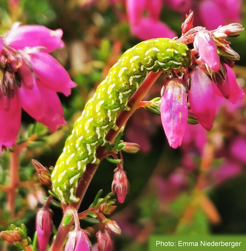 A common species of moorland and heathland flying by day in warm sunshine in June and July. The larvae feed on heather (Calluna vulgaris) and bell heather (Erica cinerea).