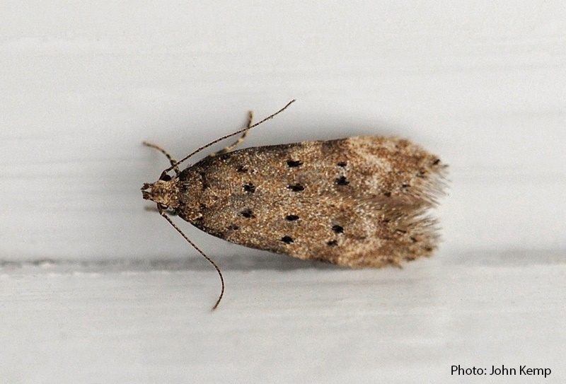 A tiny brown moth with black spotting which resembles a mini Bryotropha species. It has been found on South Uist and Eriskay from May to July and in this locality favours bog-myrtle (Myrica gale) and birch (Betula) species.