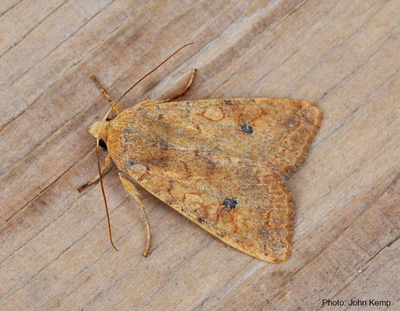 Rare with just two records from South Uist as of 2024. A late flying species: September to December, which is associated with woodland and gardens and feeds on heather (Calluna vulgaris).