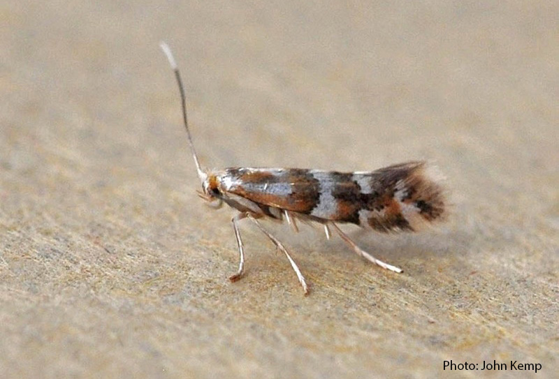 A member of a large family of tiny and in many cases similar looking moths. The larvae inhabit and feed among a number of Salix species. Adults have been found in June and July.