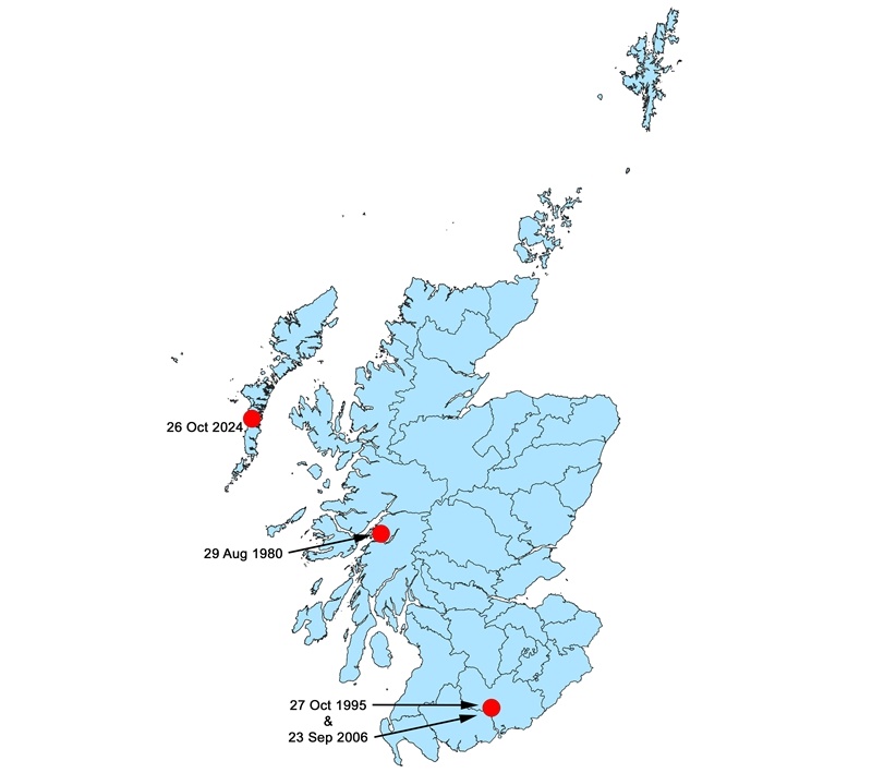 In the UK most records are from the south of England and Wales and are usually recorded in September and October. The number of records seems to have increased in the last few decades and this may be a consequence of a northwards shift of the population in Europe due to global warming. In Scotland there have been just three records previous to the one found on South Uist on the 26 October 2024, a new species record for the Outer Hebrides.