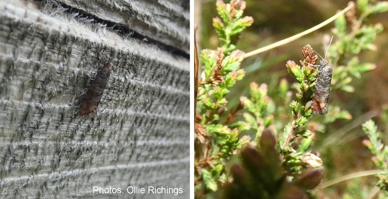 First recorded at Aline Community Woods, Lewis in April 2025 by a visiting naturalist. A minimum of 12 individuals were counted across the site, suggesting an established colony. A rare coniferous forests species confined to north-east Scotland. The flight period is April to May where it can be seen by day. The foodplants are coniferous plantation species including lodgepole pine (Pinus contorta), Scots pine (Pinus sylvestris) and Sitka spruce (Picea sitchensis).