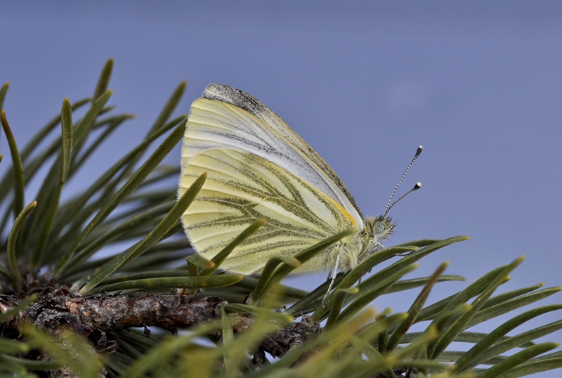Our commonest butterfly active from April to late September in three generations (although two is more likely here). Found over open landscapes, preferring damp ground. The food-plants are crucifers like cuckoo flower (Cardamine pratensis) and mustard plants in the family Brassicaceae.