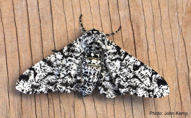 Though widespread on the mainland only two records from the Outer Hebrides. A rather striking, large moth that has a blackish coloured form in industrial areas, though this type is now declining as atmospheric pollution decreases. On the wing from May to August in wooded areas. Larvae feed on a very wide range of trees and shrubs including birches (Betula spp.), oaks (Quercus spp.), poplars (Populus spp.), brambles (Rubus spp.) and broom (Cytisus scoparius).