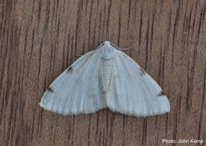 Recent range extensions within Scotland saw this species first arrive on the Outer Hebrides on South Uist in May 2025. It is mostly present in the western half of Scotland as far north as Mallaig (2025). An unmistakeable small white geometrid moth with two small black dots on the costa of each wing. Found in hedgerows, gardens and open woodland where it's foodplants include hawthorn (Crataegus monogyna) blackthorn (Prunus spinosa) and other species in the rose family.